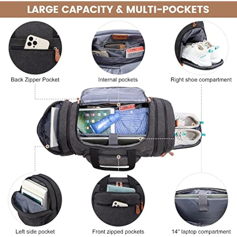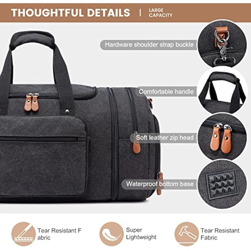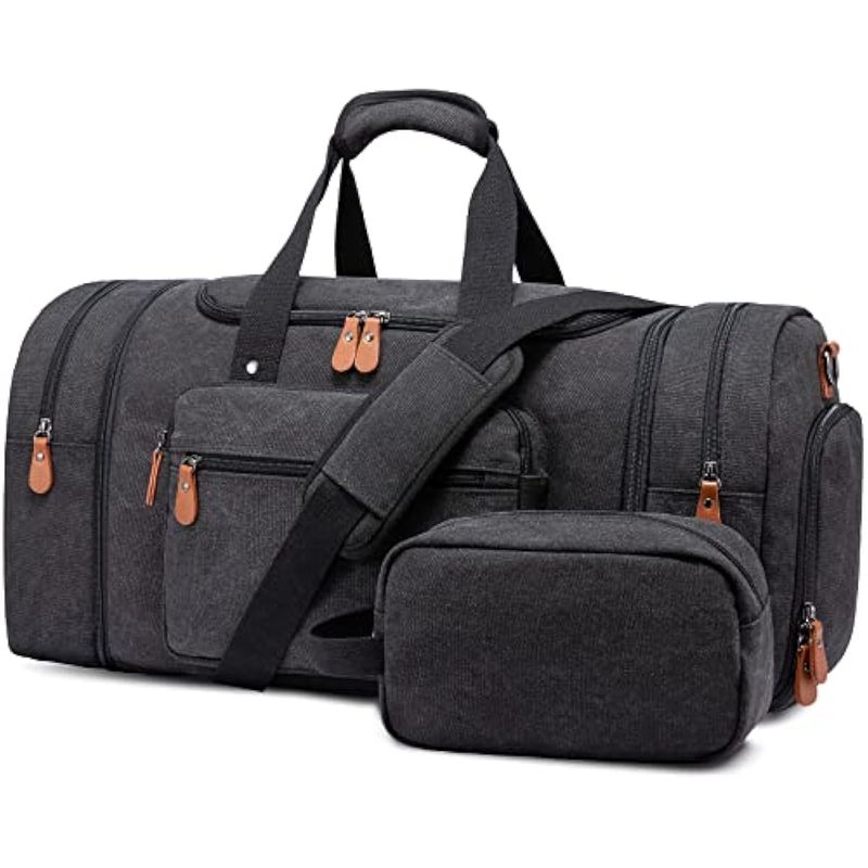 SUCIPI - BOLSA DE VIAJE DE LONA CON COMPARTIMENTO PARA ZAPATOS, BOLSA DE TRANSPORTE PARA AVIONES CON BOLSAS DE ASEO PARA HOMBRES, GRIS OSCURO, SIN RUEDA