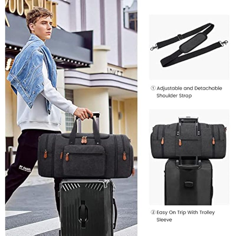 Funda para equipaje y compartimento para zapatos: la funda trasera te permite deslizarla sobre el asa de la maleta rodante, equipaje, bolsa con ruedas. Un compartimento para zapatos está diseñado en el lateral de la bolsa de lona para separar tus zapatos de otras cosas.