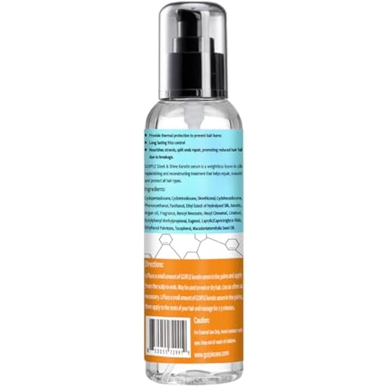 Control del encrespamiento y brillo: domina el encrespamiento rebelde y añade un brillo brillante a tu cabello con este suero. El suero de aceite capilar de queratina crea una barrera protectora que sella la humedad, evitando el encrespamiento y promoviendo un acabado elegante y brillante.