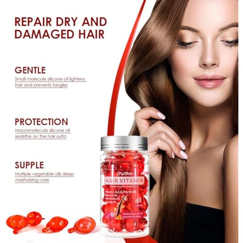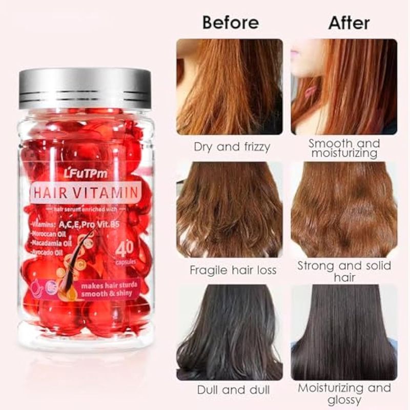 Suero de tratamiento capilar, 80 cápsulas de vitaminas para el cabello A, C, E, B5, con macadamia de