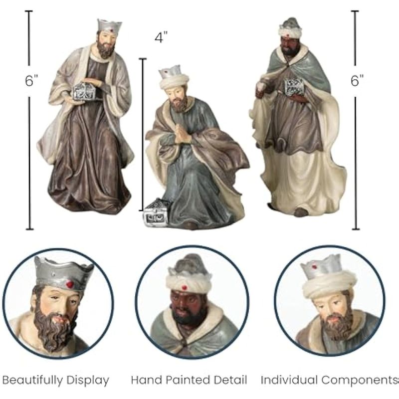 Sullivans Three Wise Men Nativity - Juego de 3, Belén pintado a mano, para Navidad, escritorio de