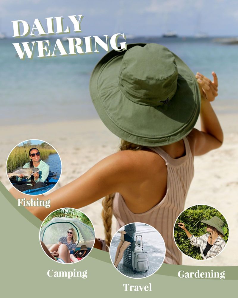 SUN HATS FOR WOMEN GARDENING HAT WIDE BRIM BEACH SUN PROTECTION BREATHABLE COTTON SUMMER HAT WITH FOLD-UP BRIM
