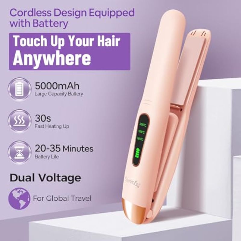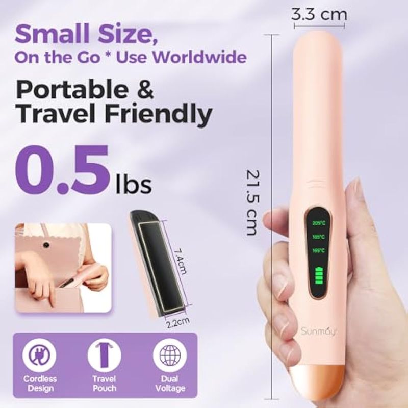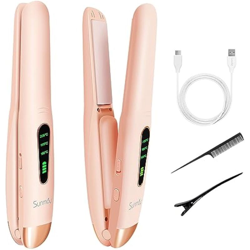 SUNMAY VOGA - ALISADOR Y RIZADOR DE PELO INALáMBRICO 2 EN 1, MINI PLANCHA PLANA PARA RETOCAR CABELLO CORTO Y FINO, VARITA RIZADORA PORTáTIL DE VIAJE Y PLANCHA ALISADORA CON RECARGABLE POR USB