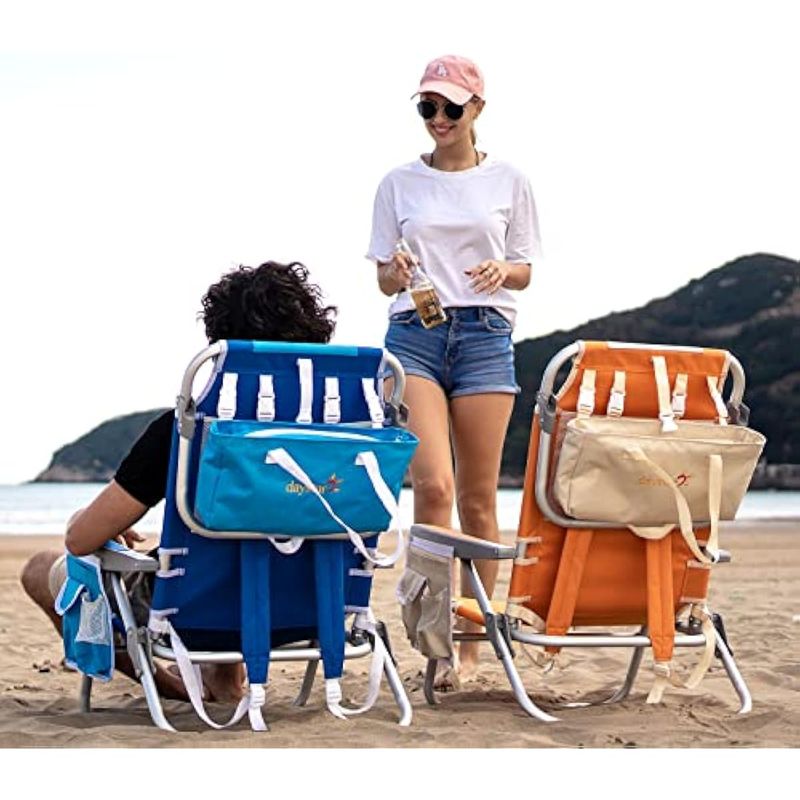 SUNNYFEEL SILLA DE PLAYA BAJA DE 5 POSICIONES PLANA, MOCHILA PLEGABLE PORTáTIL RESISTENTE CON BOLSA REFRIGERADORA, PORTAVASOS PARA EXTERIORES, CéSPED, VIAJE, PICNIC, PESCA, SILLA DE CAMPING PLEGABLE (AZUL NUEVO)