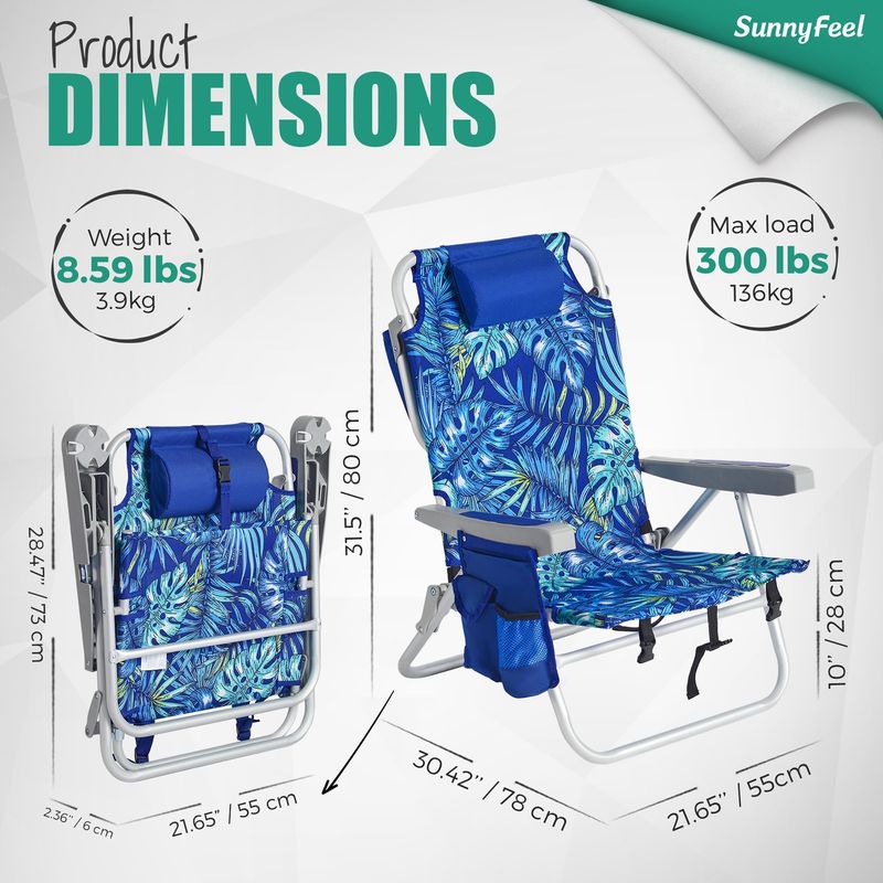 Una silla de playa mochila que está diseñada para cualquier lugar: úsala como silla de camping, silla plegable, silla de césped, silla de viaje, silla de playa y más. Adecuado para aventuras al aire libre, portón trasero, pesca, mochilero, playa, picnic, juegos deportivos, viajes en coche, o simplemente ponerlo en el patio trasero, cabaña, balcón, fiestas de césped en el patio. La silla de camping SunnyFeel es esencial para añadir a tus accesorios de campamento.