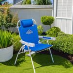 SUNNYFEEL SILLA DE PLAYA BAJA DE 5 POSICIONES PLANA, MOCHILA PLEGABLE PORTáTIL RESISTENTE CON BOLSA REFRIGERADORA, PORTAVASOS PARA EXTERIORES, CéSPED, VIAJE, PICNIC, PESCA, SILLA DE CAMPING PLEGABLE (AZUL NUEVO)