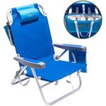 SUNNYFEEL SILLA DE PLAYA BAJA DE 5 POSICIONES PLANA, MOCHILA PLEGABLE PORTáTIL RESISTENTE CON BOLSA REFRIGERADORA, PORTAVASOS PARA EXTERIORES, CéSPED, VIAJE, PICNIC, PESCA, SILLA DE CAMPING PLEGABLE (AZUL NUEVO)
