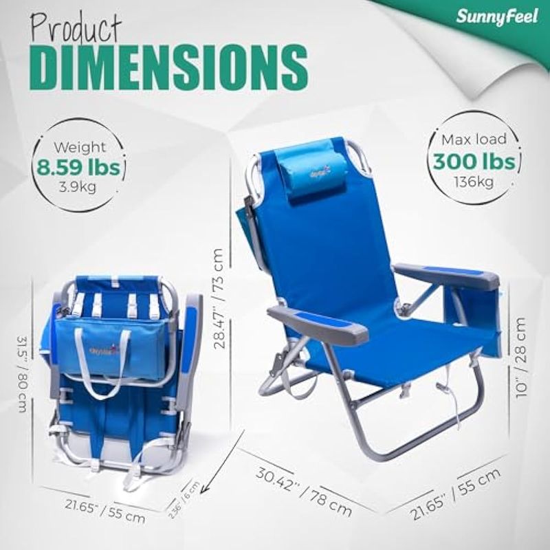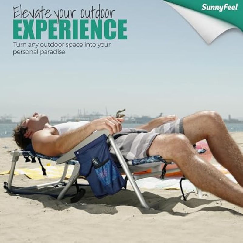 Una silla de playa mochila que está diseñada para cualquier lugar: úsala como silla de camping, silla plegable, silla de césped, silla de viaje, silla de playa y más. Adecuado para aventuras al aire libre, portón trasero, pesca, mochilero, playa, picnic, juegos deportivos, viajes en coche, o simplemente ponerlo en el patio trasero, cabaña, balcón, fiestas de césped en el patio. La silla de camping SunnyFeel es esencial para añadir a tus accesorios de campamento.