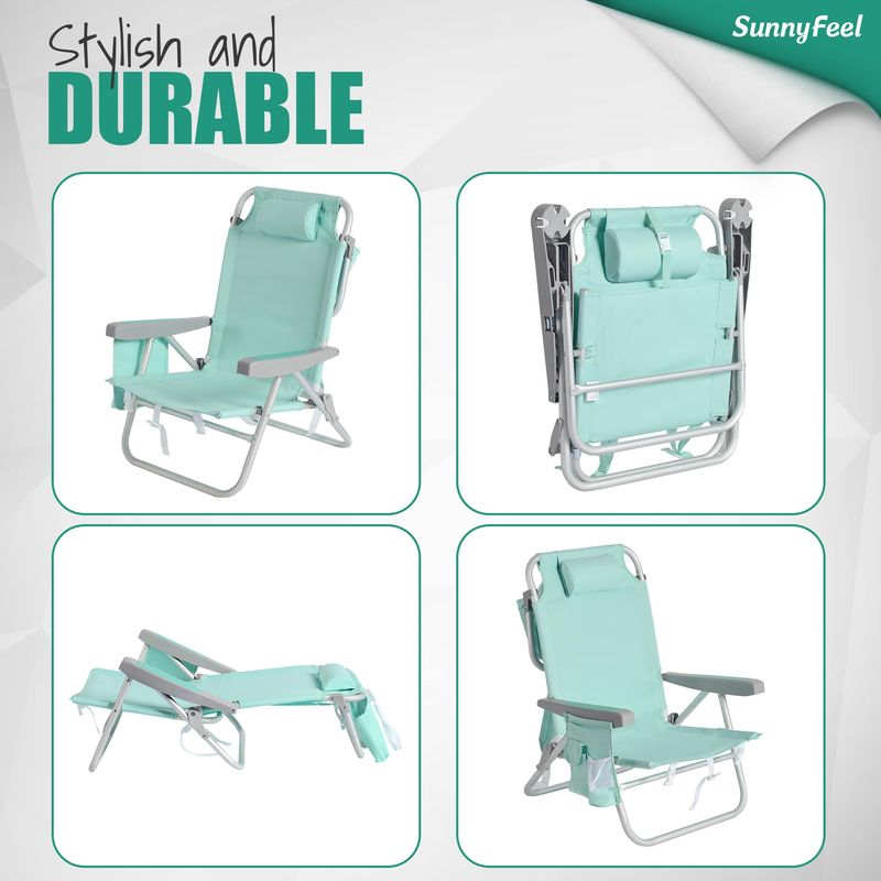 SUNNYFEEL Silla de playa baja de 5 posiciones plana, mochila plegable portátil resistente con bolsa