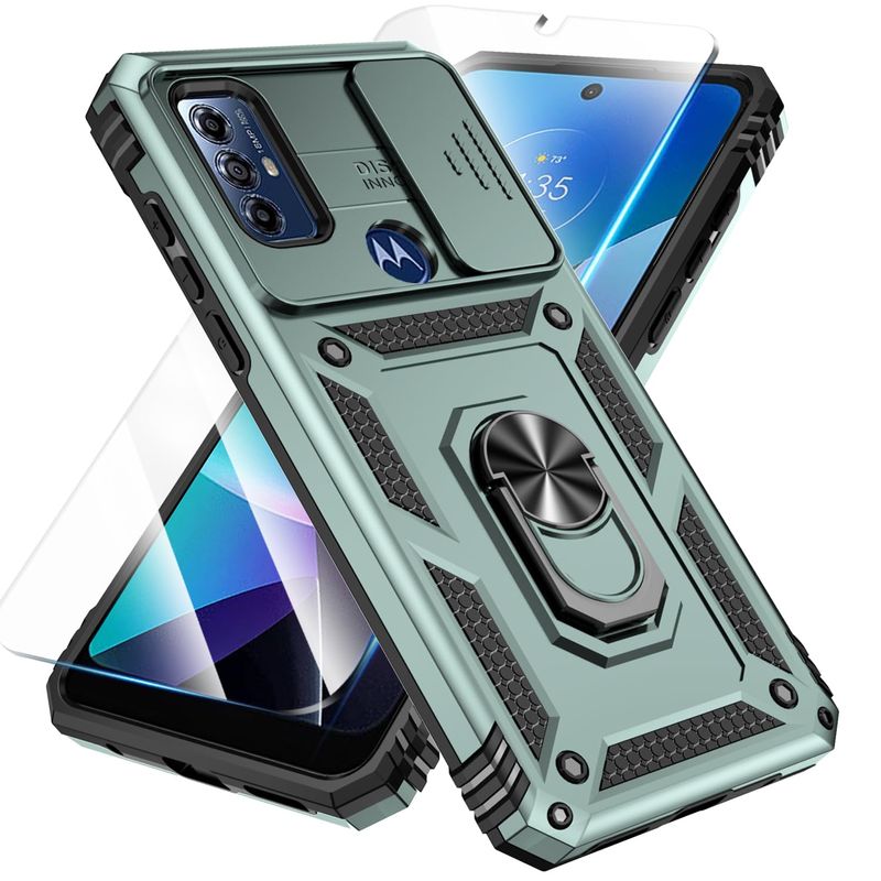 SUNSTORY FUNDA PARA MOTOROLA MOTO G PLAY 2023, FUNDA MOTO G PURE, FUNDA MOTO G POWER 2022 CON PROTECTOR DE PANTALLA HD [2 PAQUETES], PROTECCIóN DE ESTRUCTURA DOS EN UNO (SOPORTE ROJO)