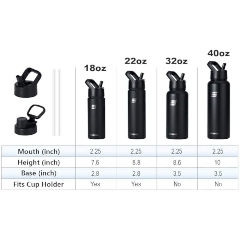 Tecnología de aislamiento al vacío: la botella de agua de 18 oz está aislada de doble pared para mantener tu bebida fría durante 24 horas y caliente durante 12 horas con sabor fresco. A prueba de fugas cuando se cierra correctamente. Sin sudor y sin condensación.