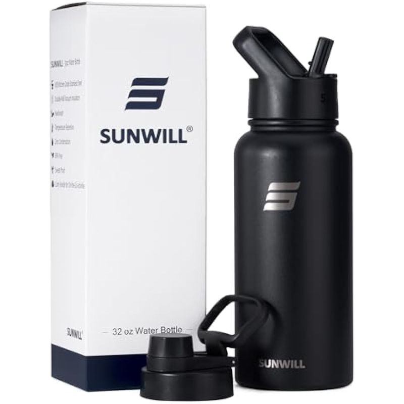 SUNWILL BOTELLA DE AGUA AISLADA CON PAJILLA, BOTELLA DE AGUA PARA DEPORTES Y VIAJES, DE ACERO INOXIDABLE DE DOBLE PARED, APTA PARA PORTAVASOS, BOTELLA TéRMICA REUTILIZABLE DE BOCA ANCHA, A PRUEBA DE FUGAS, SIN BPA
