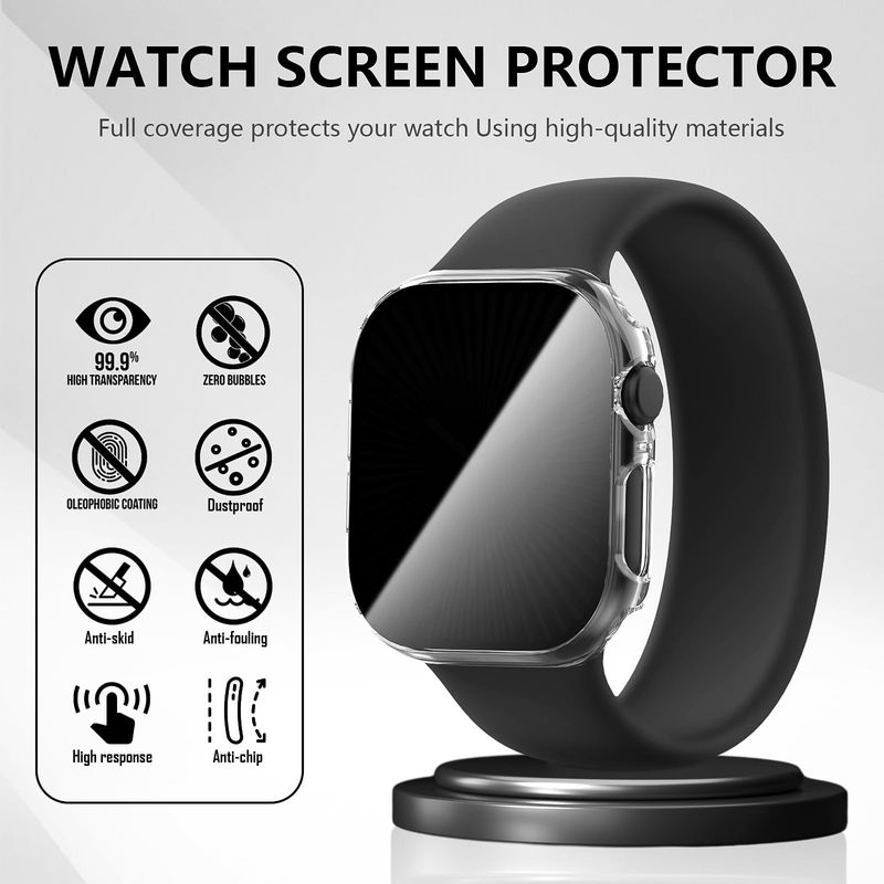 ?Características del producto?Protección de pantalla antimirillas de cobertura completa que protege completamente tu Apple Watch de arañazos, golpes y caídas accidentales. Funda protectora de pantalla de vidrio templado de privacidad, sensibilidad táctil original. ¡La mejor opción!