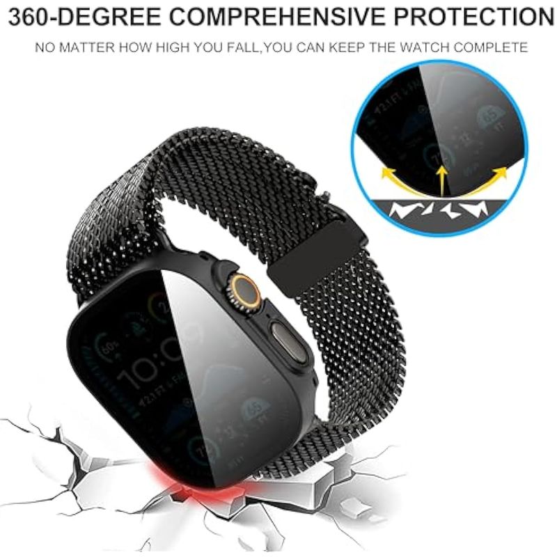 ?Características del producto?Protección de pantalla antimirillas de cobertura completa que protege completamente tu Apple Watch de arañazos, golpes y caídas accidentales. Funda protectora de pantalla de vidrio templado de privacidad, sensibilidad táctil original. ¡La mejor opción!