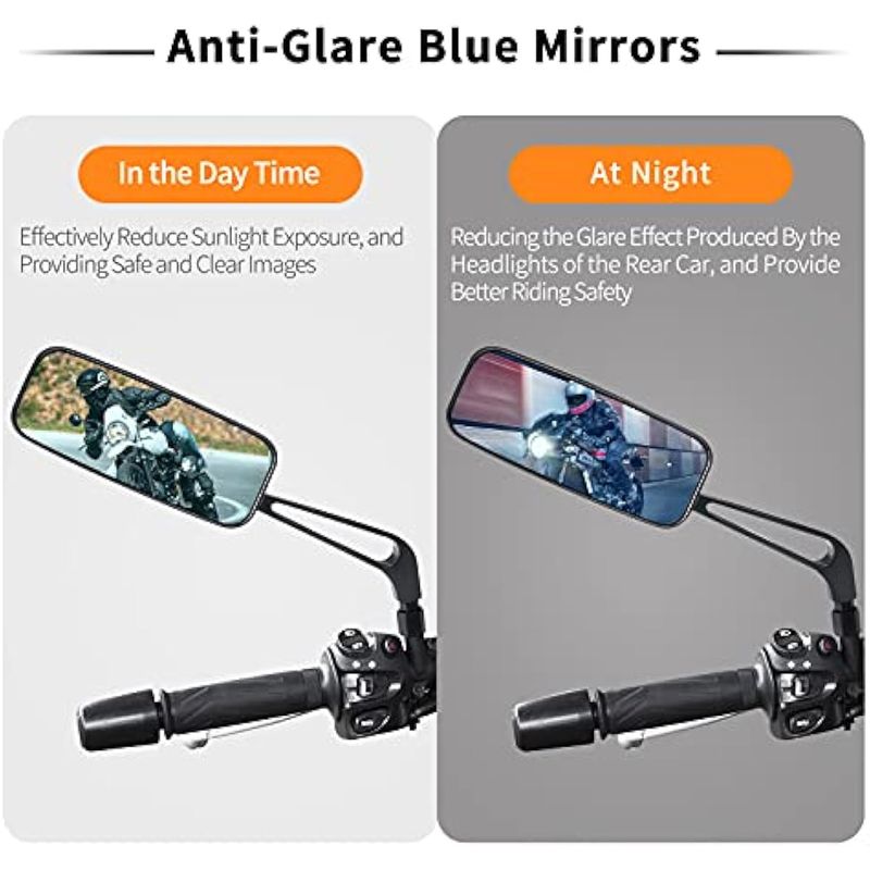 RODADOSMOTOSsurpassme 0.315 in/0.394 in Negro Rectángulo Motocicleta Bobber Espejos Espejo Azul Reducción del