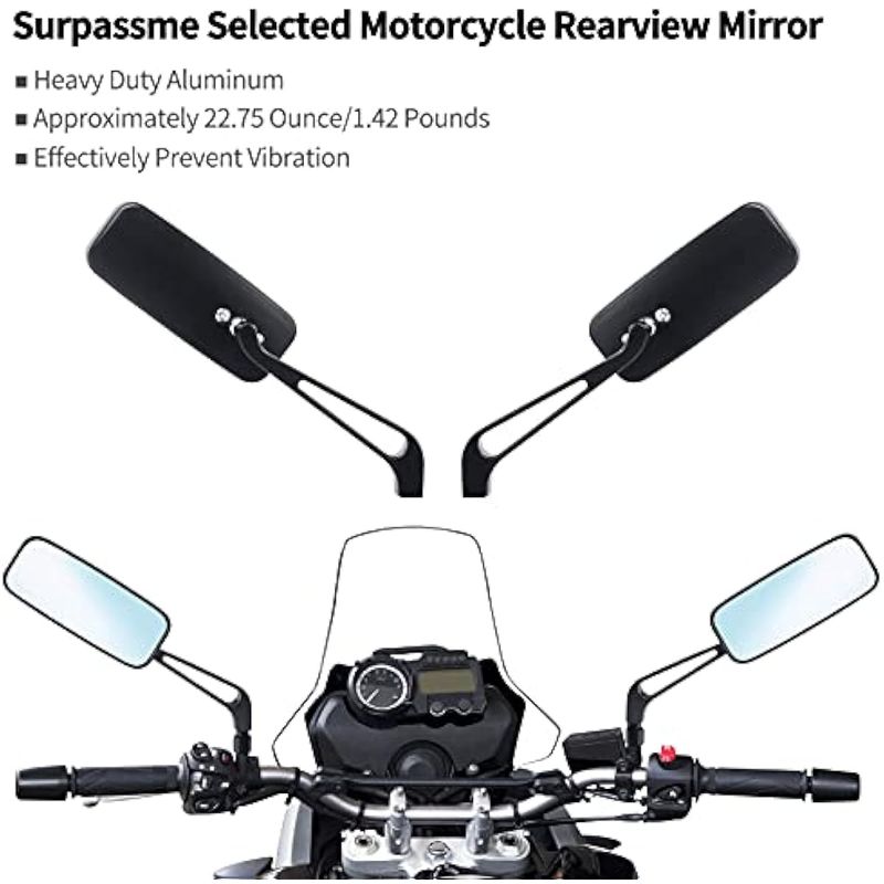 surpassme 0.315 in/0.394 in Negro Rectángulo Motocicleta Bobber Espejos Espejo Azul Reducción del