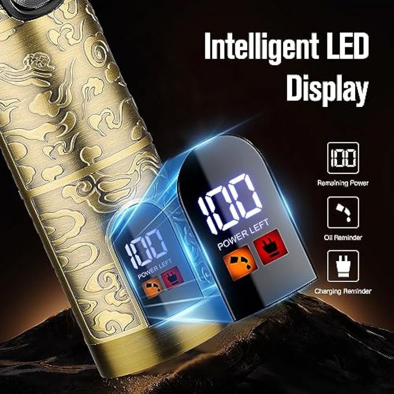 Increíble rendimiento de la batería y pantalla digital LCD: batería de seguridad recargable integrada de alta capacidad, soporta uso con cableinalámbrico, la cortadora de cabello puede funcionar 150 minutos después de 2.5 horas de carga. La pantalla LCD de alta definición puede mostrarle claramente el estado de la batería y recordarle que debe gotear aceite de la cuchilla a tiempo.
