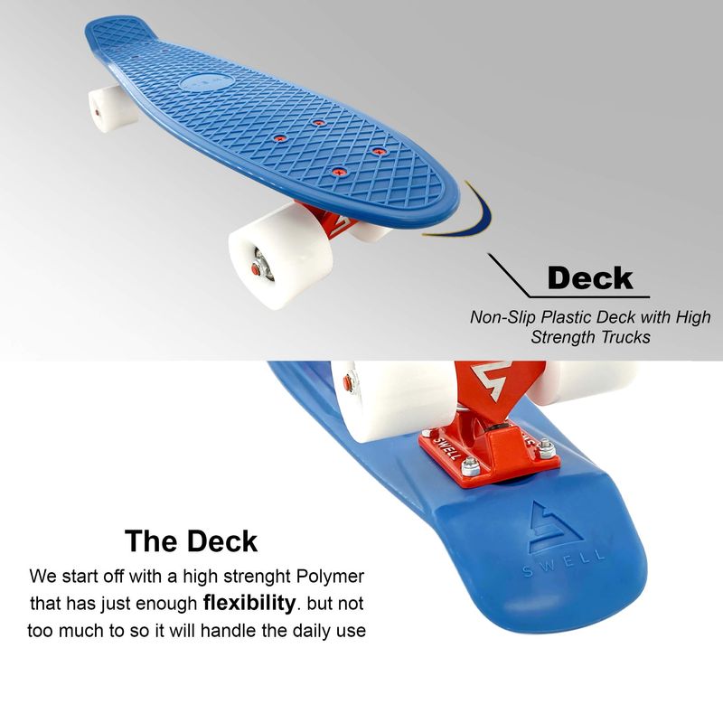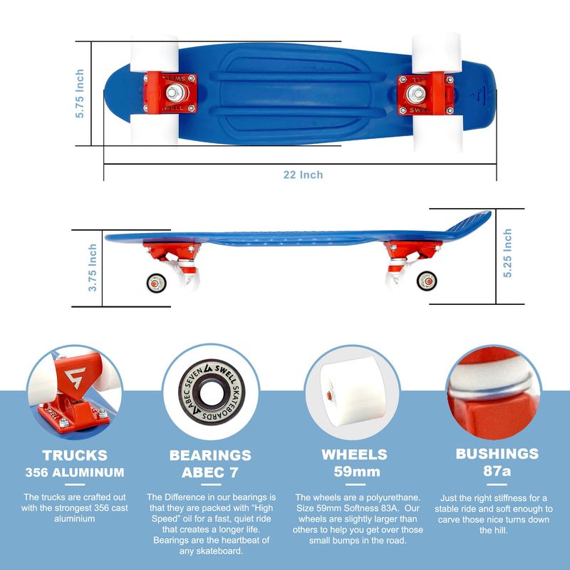 Swell Skateboards Monopatín completo retro de plástico de 22 pulgadas y 28 pulgadas para