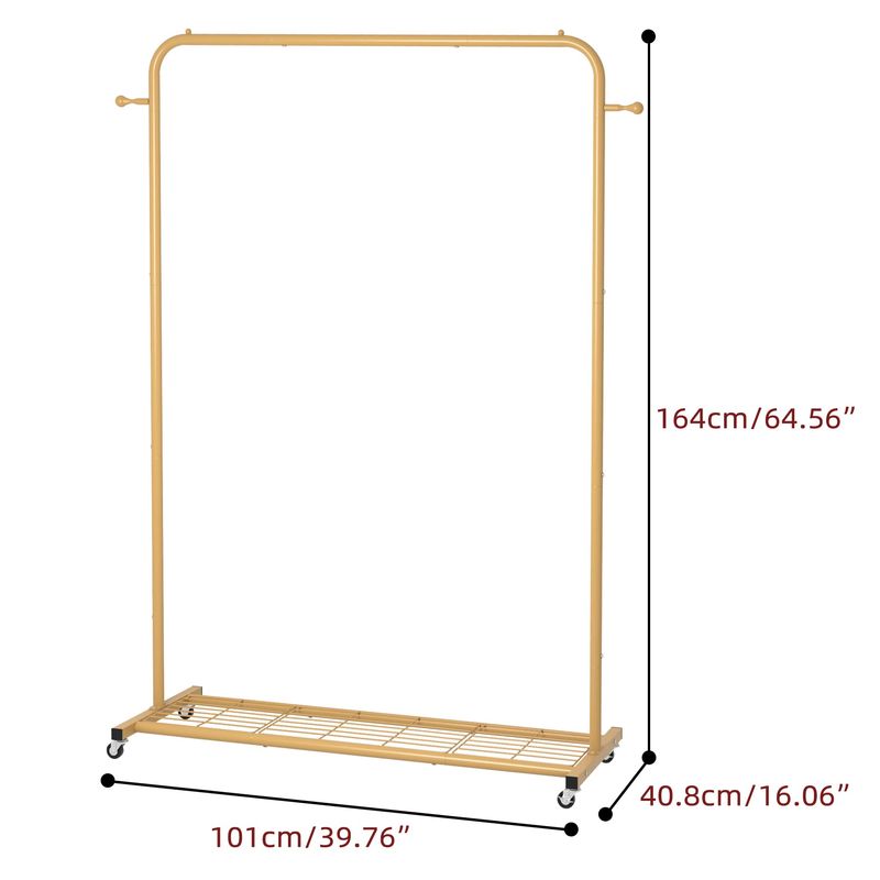 Sywhitta Perchero con ruedas, perchero con estante inferior de malla de almacenamiento, marco de
