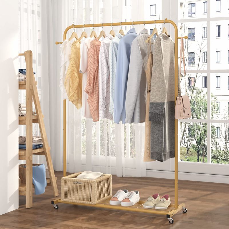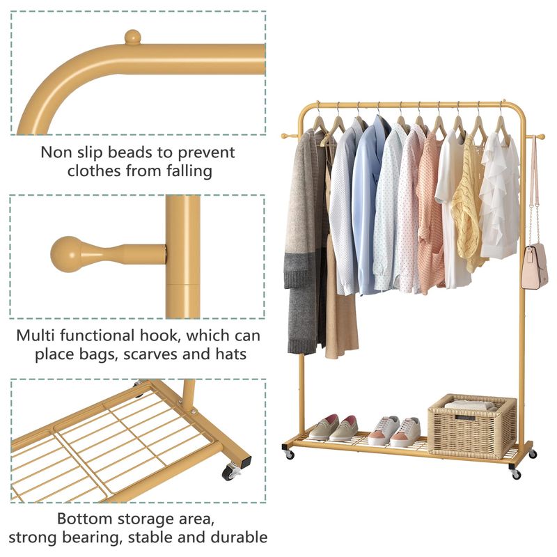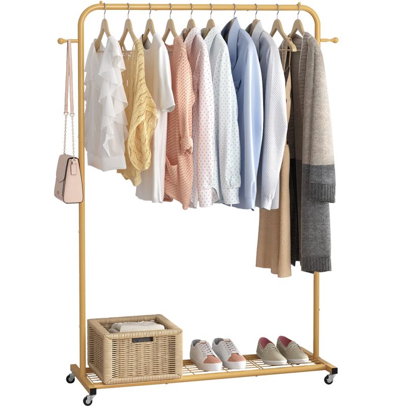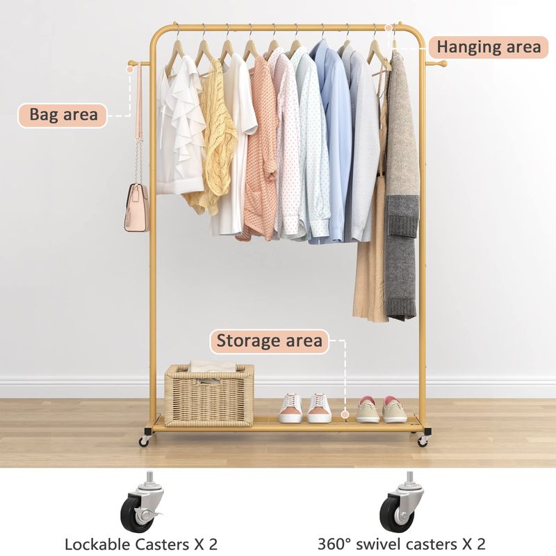 HOGARAMOBLAMIENTOMUEBLES DE DORMITORIOSywhitta Perchero con ruedas, perchero con estante inferior de malla de almacenamiento, marco de