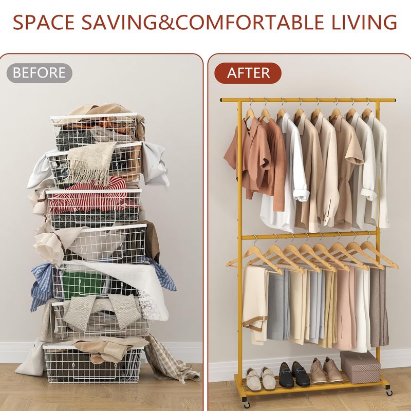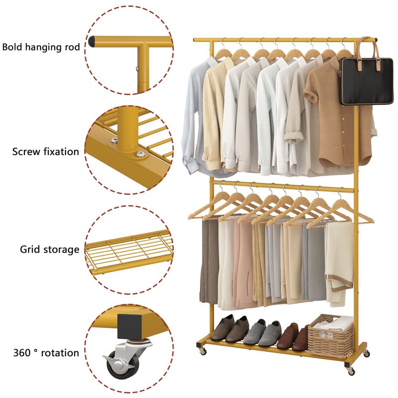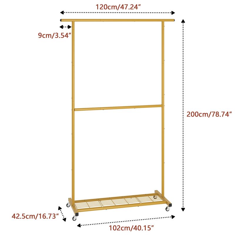 HOGARAMOBLAMIENTOMUEBLES DE DORMITORIOSywhitta Perchero de ropa de doble barra, colgador de abrigo con malla inferior, perchero para