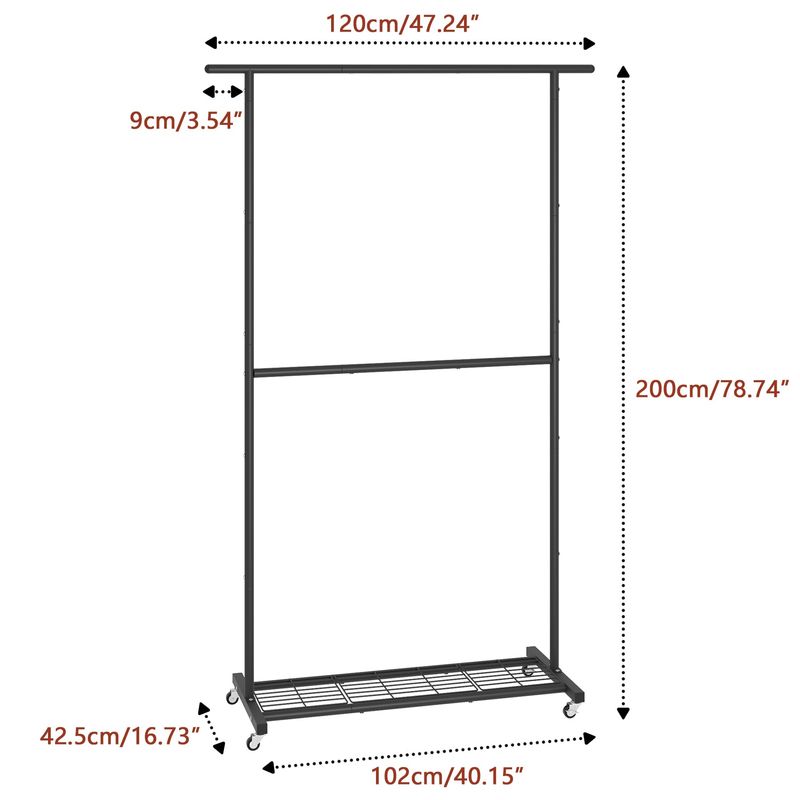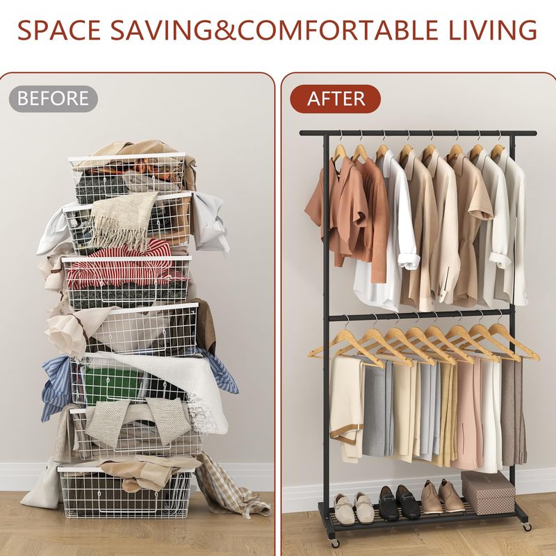 Libre movimiento: el perchero tiene cuatro ruedas de 360° para un movimiento fácil y flexible. Marco ligero, fácil de transportar, se puede mover a cualquier lugar. Este perchero es una gran manera de organizar tu ropa extra, satisfacer tus necesidades diarias y decir adiós a una habitación desordenada.