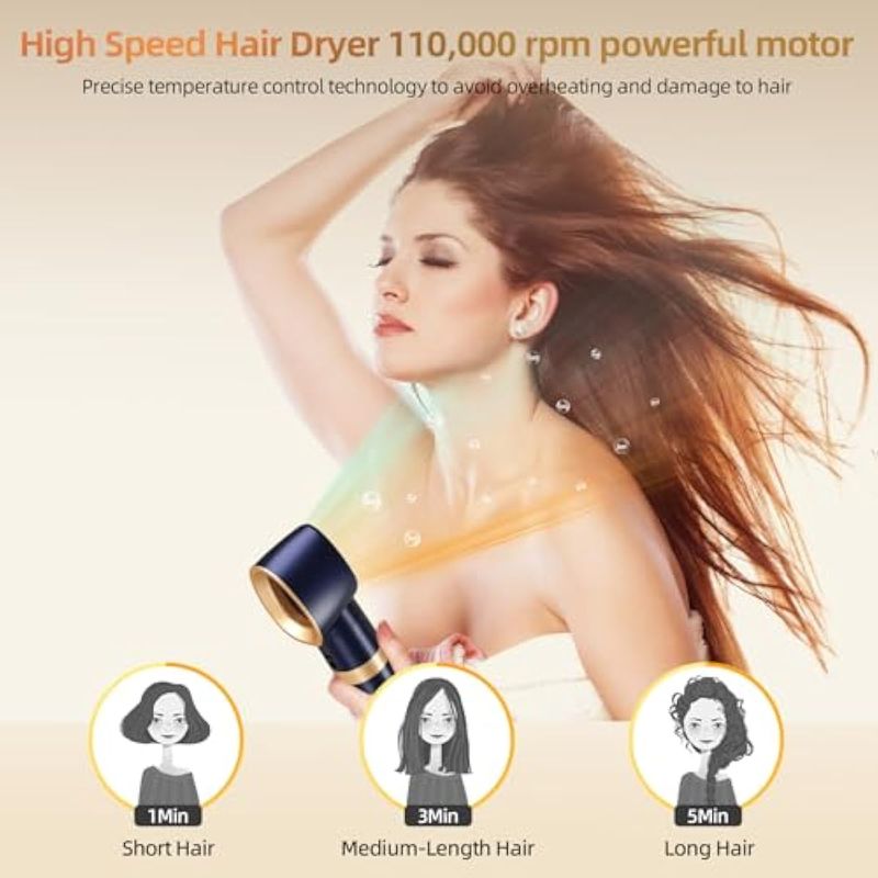 Motor sin escobillas de alta velocidad: ¡el juego de peinadores profesionales ciertamente necesita estar equipado con una potencia potente! Este moldeador multifuncional para cabello cuenta con un potente motor que funciona a 110000 revoluciones por minuto, peina tu cabello mientras se seca en solo 3-4 minutos, reduce el encrespamiento para un cabello más suave y saludable