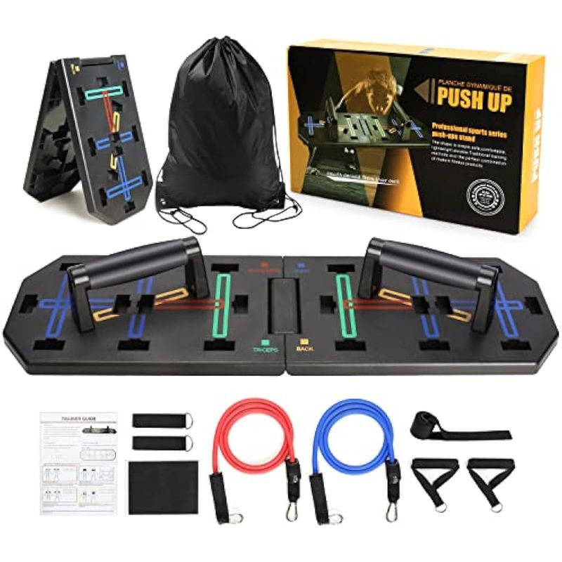 Tabla de empuje, barra de empuje plegable multifunción mejorada con bandas de resistencia, equipo de
