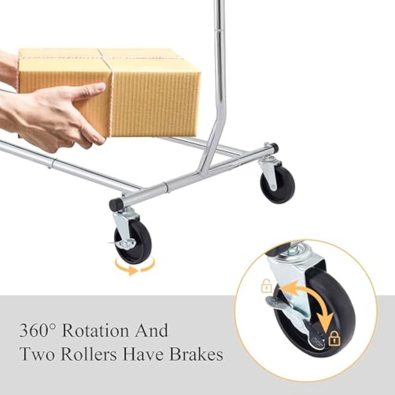 Ruedas de 360° con frenos: cuatro ruedas giratorias de 360°, 2 de las cuales tienen frenos, hacen que sea fácil mover este perchero plegable de una habitación a otra y bloquearlo en su lugar cuando sea necesario. Además, las ruedas de goma son duraderas y protegerán tu suelo de arañazos.