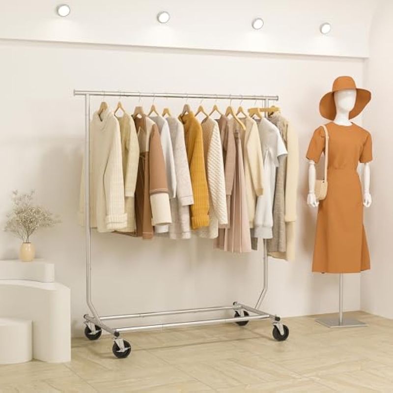 TAJSOON PERCHERO DE ROPA RESISTENTE CON RUEDAS Y BARRA EXTENSIBLE, PERCHERO PLEGABLE PARA ROPA CON CAPACIDAD MáXIMA DE 300 LIBRAS, ESTANTE INDUSTRIAL CON ESTANTE INFERIOR, CROMADO