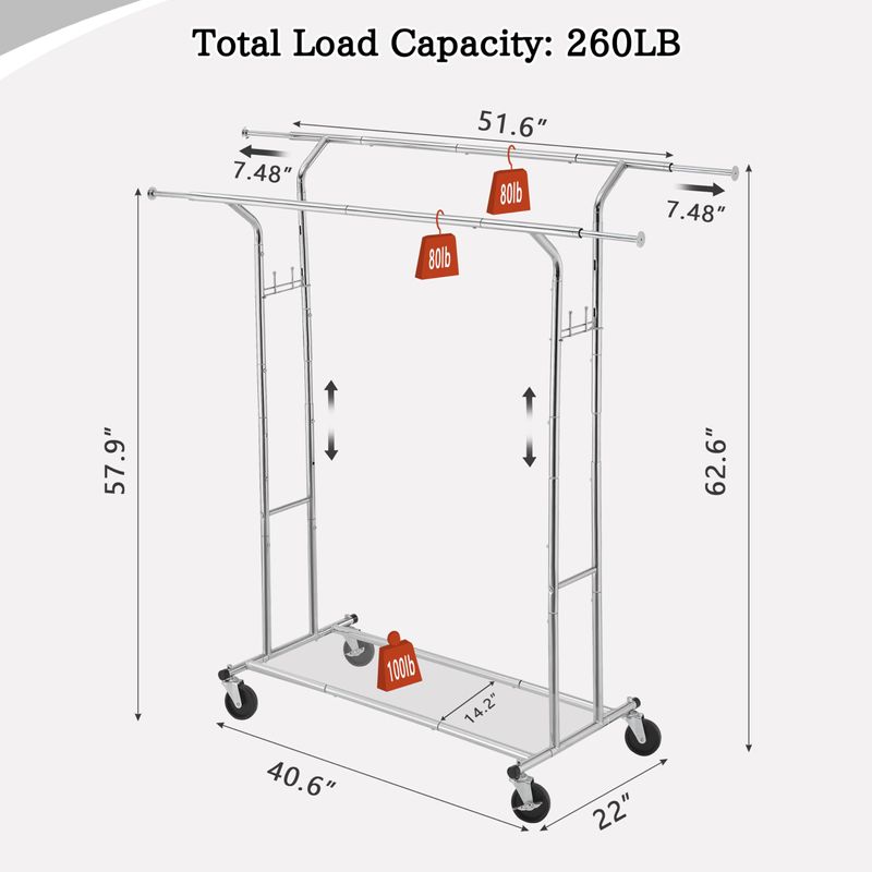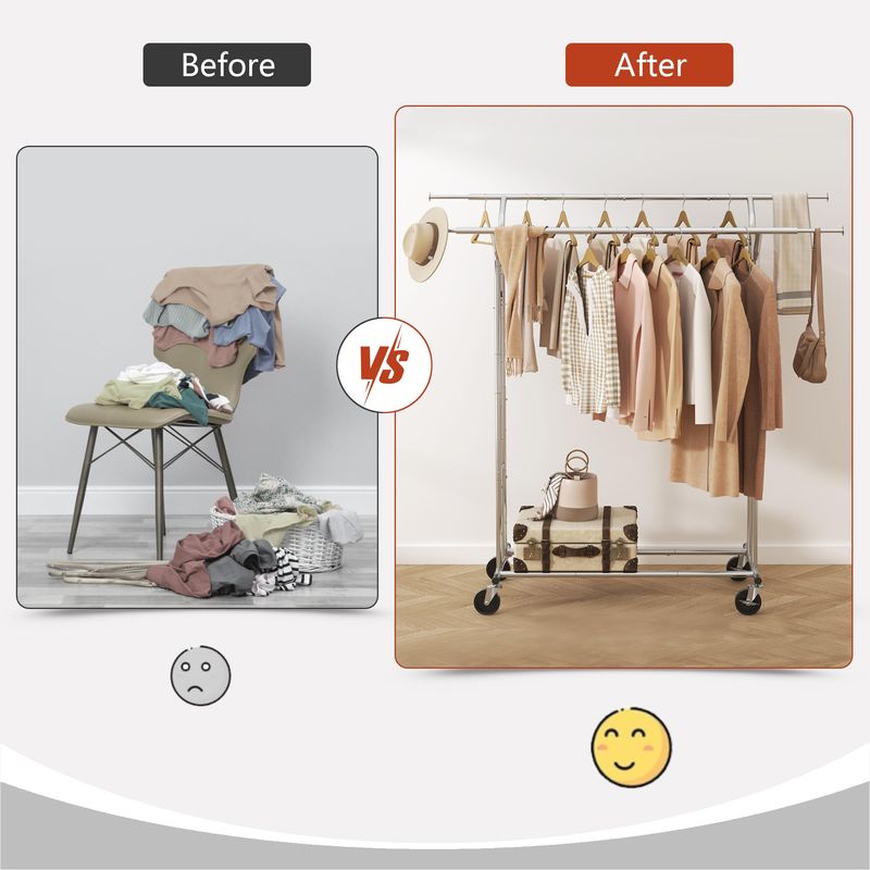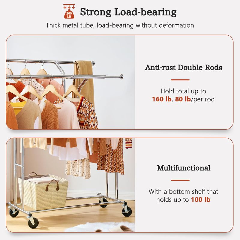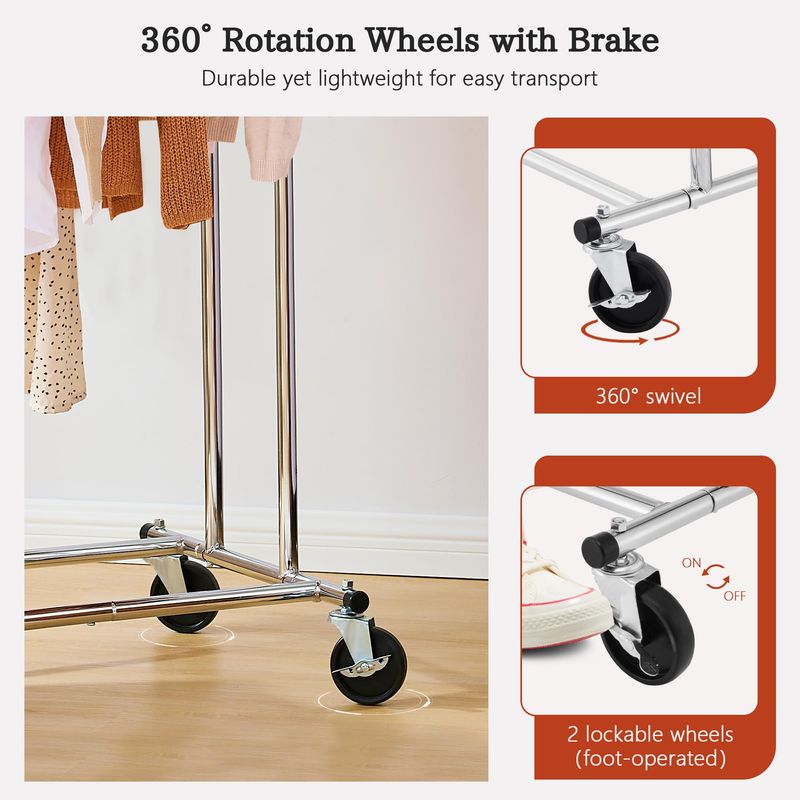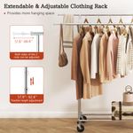 Tajsoon Perchero de ropa resistente con ruedas y barra extensible, perchero plegable para ropa con