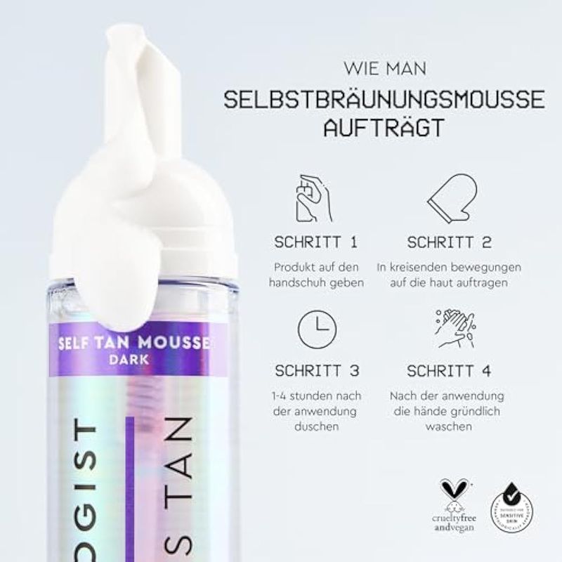 Hidrata y suave: la mousse bronceadora de tanólogo está formulada con pomelo, bayas de Goji y enebro para hidratar e iluminar. La raíz extra reafirmante y el extracto de resina trabajan para suavizar y tonificar la piel.