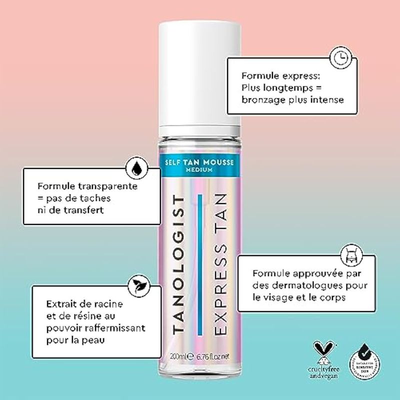 TANOLOGIST EXPRESS SELF TAN MOUSSE, EXTRA DARK - ESPUMA BRONCEADORA HIDRATANTE SIN SOL, VEGANA Y LIBRE DE CRUELDAD ANIMAL, 6.76 ONZAS LíQUIDAS