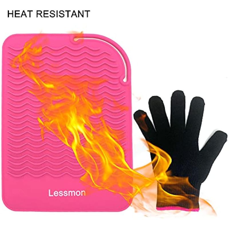 Tapete de viaje de plancha plana, protector de mostrador de rizador con guante resistente al calor