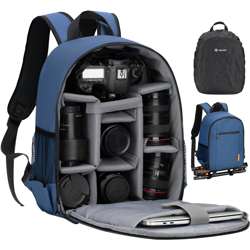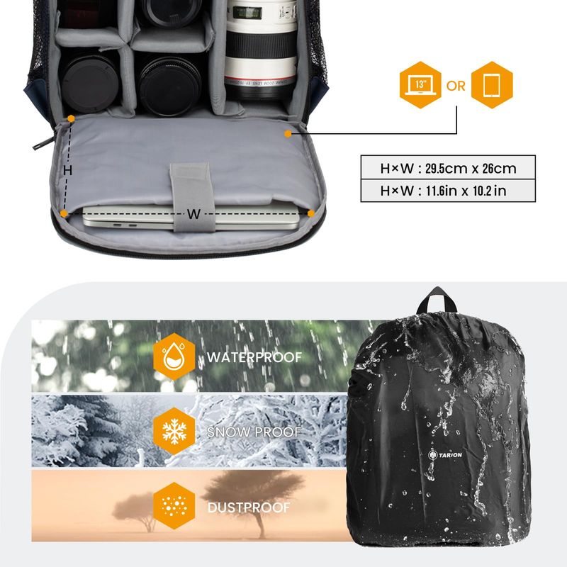 TARION Mochila profesional para cámara con cubierta de lluvia, compartimento para laptop,