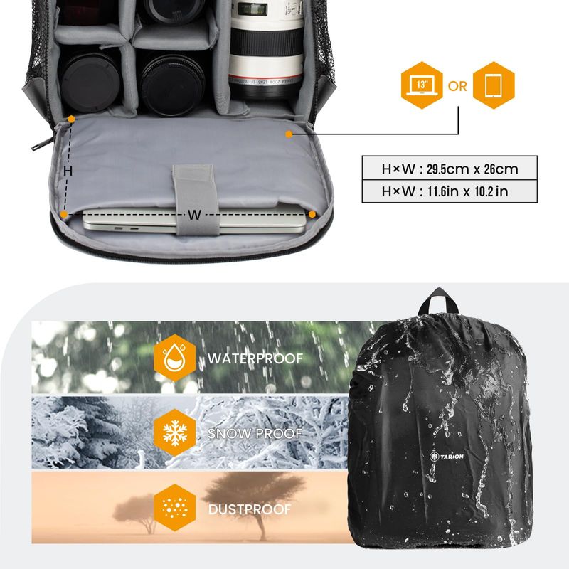TARION Mochila profesional para cámara con cubierta de lluvia, compartimento para laptop,
