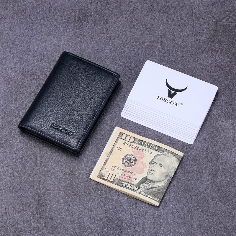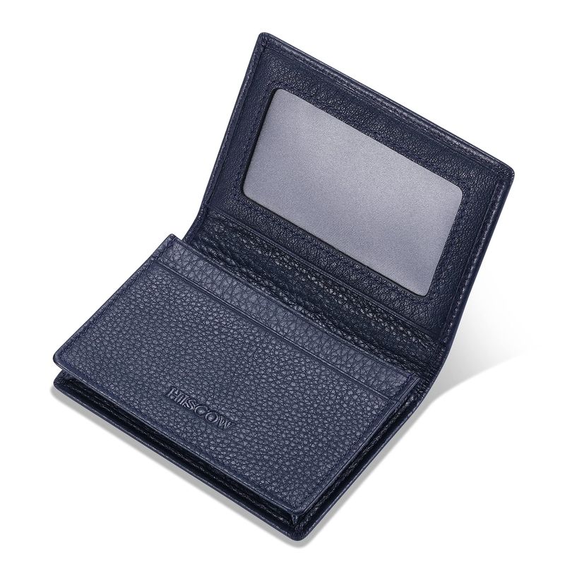 Bien construido: 1 compartimento grande para tarjetas de visita o dinero, 1 ranura interior para tarjeta de crédito, 1 ventana de identificación de plástico transparente.