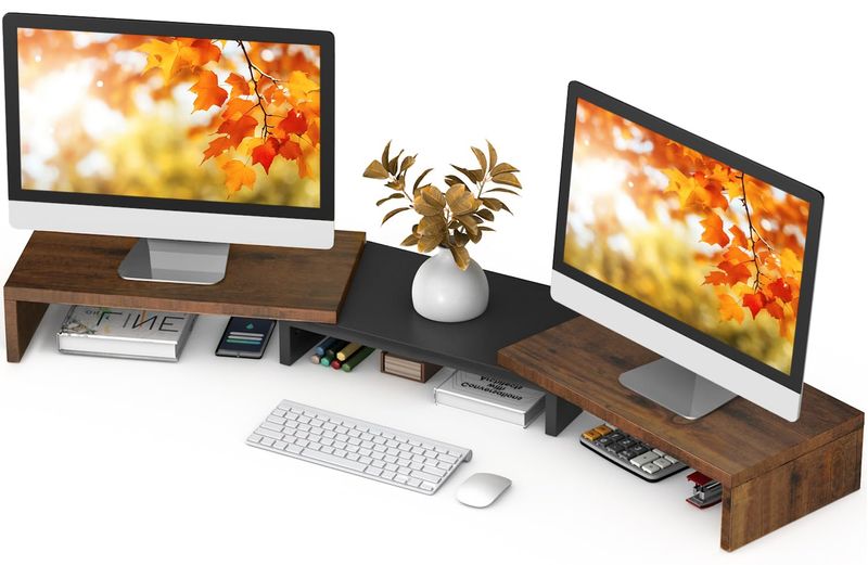 TAVR - Soporte para monitor doble, soporte para monitor de computadora para 2 monitores, organizador
