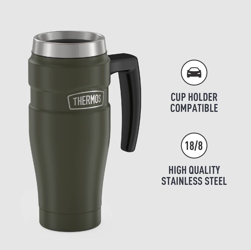 TAZA DE VIAJE DE 16 ONZAS CON MANGO THERMOS STAINLESS KING, ACERO INOXIDABLE