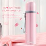 Material: el termo está hecho de acero inoxidable 304 de grado alimenticio, tanque interior al vacío, con conservación del calor y efecto de conservación del frío, pared interior de electrolito doble. La tapa de la taza está hecha de polipropileno, resina ABS y junta de silicona.