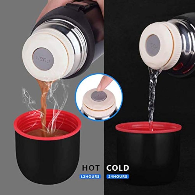 Material: el termo está hecho de acero inoxidable 304 de grado alimenticio, tanque interior al vacío, con conservación del calor y efecto de conservación del frío, pared interior de electrolito doble. La tapa de la taza está hecha de polipropileno, resina ABS y junta de silicona.