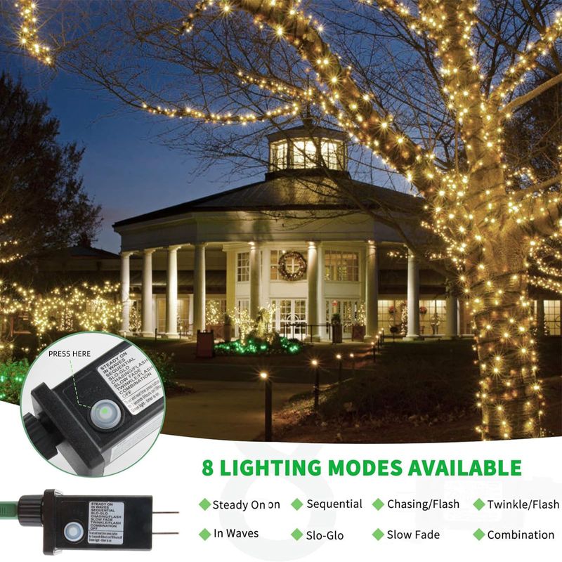 Tcamp 300 luces LED de Navidad de 105 pies para interiores y exteriores, color blanco cálido,