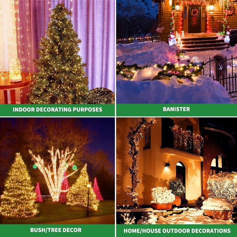 HOGARBAZARILUMINACIONTcamp 300 luces LED de Navidad de 105 pies para interiores y exteriores, color blanco cálido,