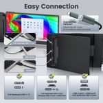 Diseño portátil para un uso fácil: además del soporte integrado ajustable y el marco de fijación elástico, el extensor de monitor para portátil Teamgee de 14 pulgadas también viene con un soporte superior y alfombrillas de goma antipellizcos para protección de laptop. Para mayor comodidad, cada pantalla está equipada con un botón todo en uno para múltiples funciones y soporta rotación de 0-180 ° para un fácil plegado. Ponlo en la bolsa de almacenamiento proporcionada y llévalo donde quieras.