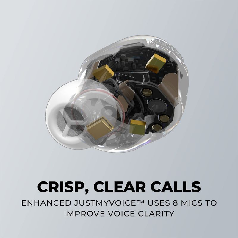 Claridad de llamada excepcional: no hay tiempo para mensajes mixtos: escuche palabras claras, no sonidos externos con tecnología JustMyVoice mejorada; 8 micrófonos MEMS de alta sensibilidad y reducción de ruido avanzada capturan y transmiten su voz claramente