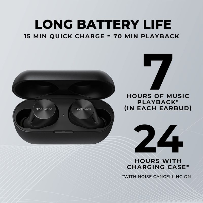 TECHNICS AURICULARES BLUETOOTH INALáMBRICOS DE ALTA FIDELIDAD MULTIPUNTO CON CANCELACIóN DE RUIDO, CONECTIVIDAD MULTIPUNTO DE 3 DISPOSITIVOS, CARGA INALáMBRICA, CALIDAD DE LLAMADA IMPRESIONANTE, COMPATIBLE CON LDAC - EAH-AZ60M2-K (NEGRO)