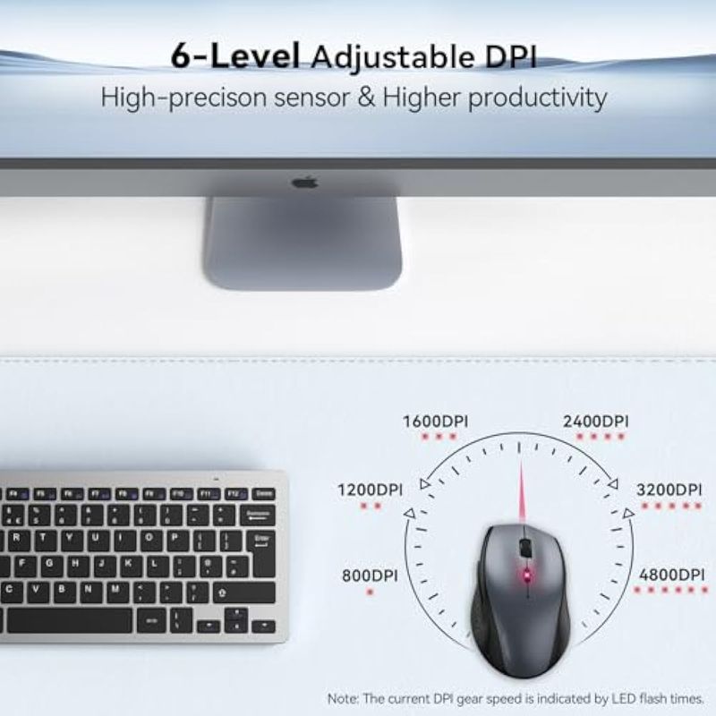 6 niveles de DPI ajustables y 6 botones: el mouse inalámbrico TECKNET tiene un DPI ajustable de 6 niveles 80012001600200024003200, que proporciona más sensibilidad que los ratones ópticos estándar para un seguimiento suave y preciso en una amplia gama de superficies.