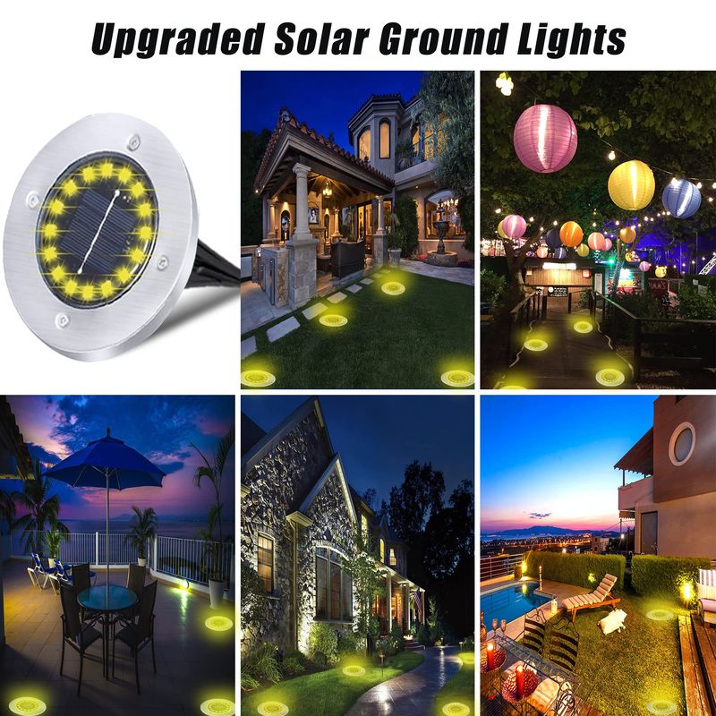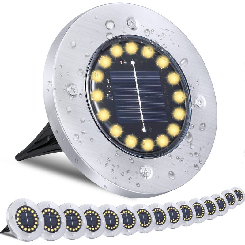 TenFen Paquete de 12 luces solares brillantes en el suelo, impermeables, 16 LED para jardín, luces