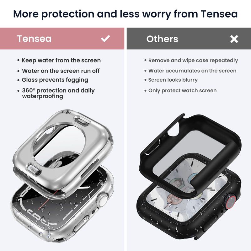 Tensea - Funda protectora de pantalla impermeable para Apple Watch (2 en 1) para Apple Watch Serie