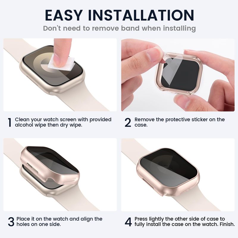 Tensea Paquete de 3 fundas protectoras de pantalla para Apple Watch Series 9, 8, 7, de 1.772